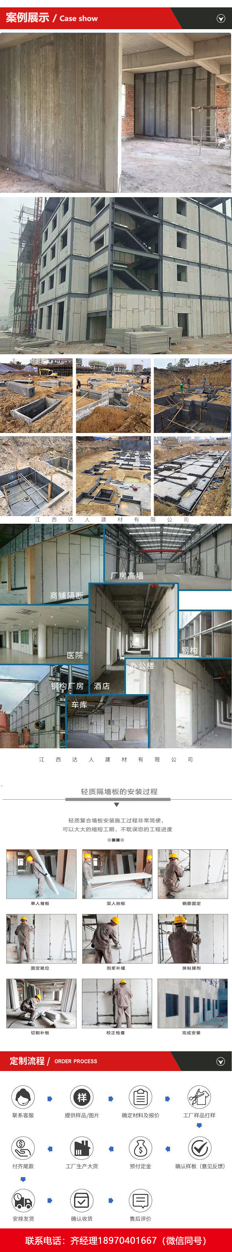 公司產品是依托國內著名建筑材料工業科學研究設計院的技術優勢,應用高技術、新材料、新工藝、研究、開發科技含量高、質量優、功能強、環保型的高新建材產品及其施工應用技術。公司旗下輕質隔墻板自推出市場以來,以其獨特的功效暢銷于業內,產銷量年年快速上升,應用范圍不斷拓展,并且成功應用于國內多個標志性大型工程項目。其中有:紫金礦業、江西銅業、濱江賓館、前湖迎賓館、南昌火車站、江西省中醫院、南昌大學附屬醫院等,在全國主要城市均樹立一大批標志性樣板工程,應用領域覆蓋公共建筑(樓、館、中心)、高檔酒店、娛樂場所、寫字樓、商場、高層住宅、別墅等等,應用范圍包括室內隔墻、外墻、屋面、樓層板、防火隔斷、組合房屋構件等,受到廣大用戶的一致贊譽。